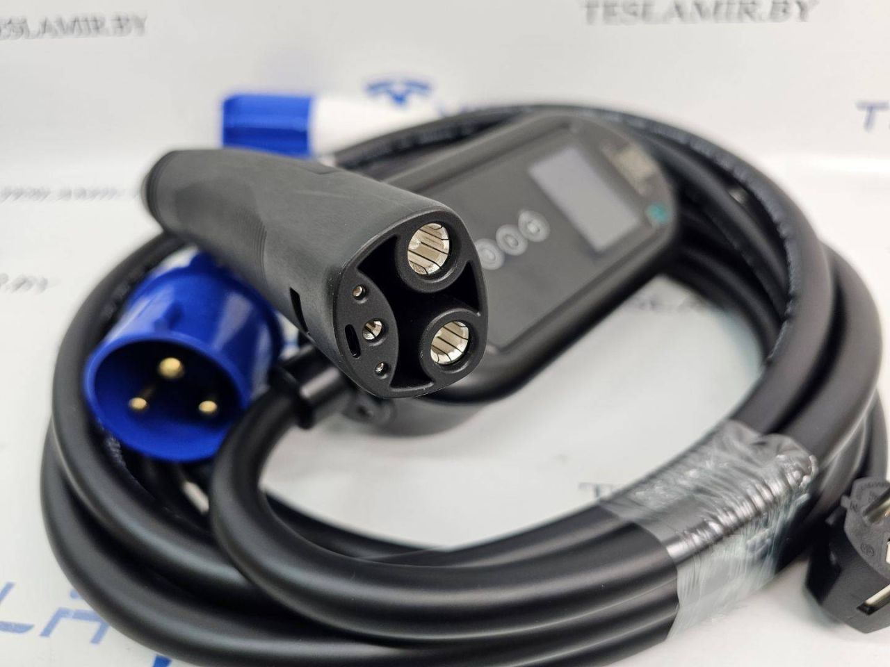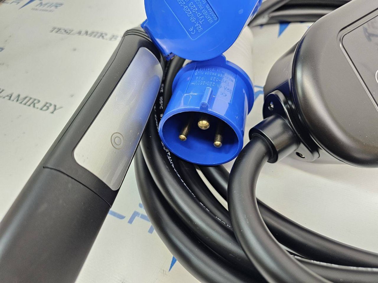 Портативное зарядное устройство для электромобилей Tesla/NACS/TPC с промышленной розеткой европейского стандарта 32 А, кабель 6 метров.